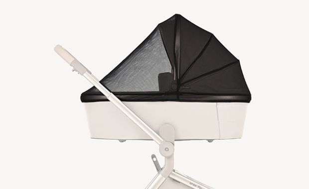 A mózeskosár elegánsan összehajtható, miközben tágas és kényelmes teret biztosít az újszülött számára – a luxus itt a részletekben rejlik.