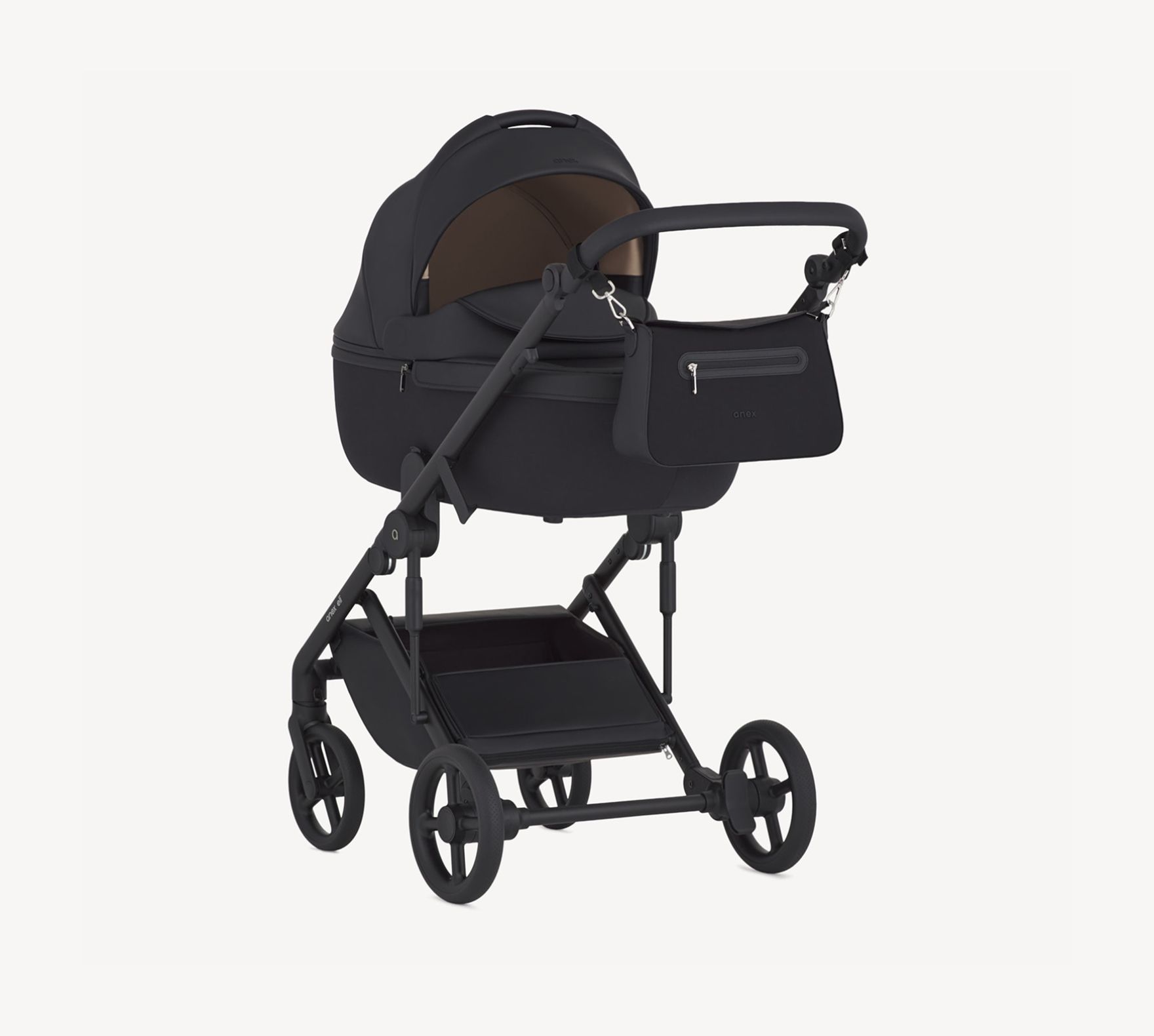 Kompatibilis az Anex babakocsikkal: Eli (kivéve a kifelé néző magasság-adaptereken lévő ülést), Flo, Modu (csak egy mózeskosárral vagy üléssel, autósüléssel vagy kisállat-mózeskosárral).