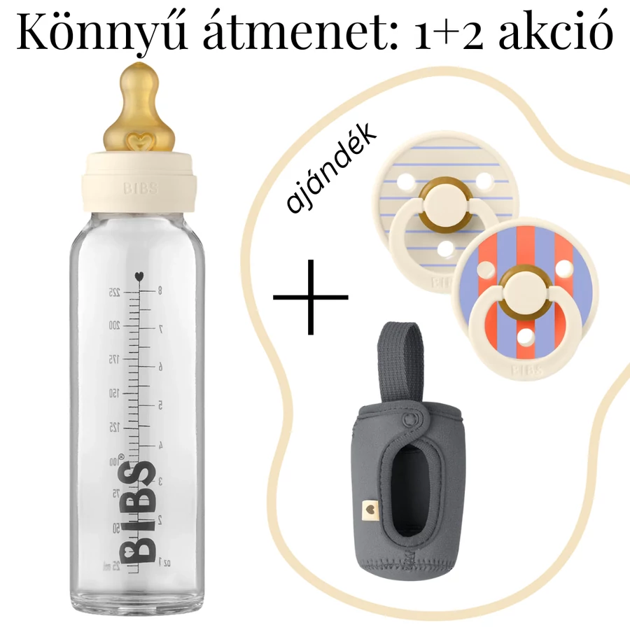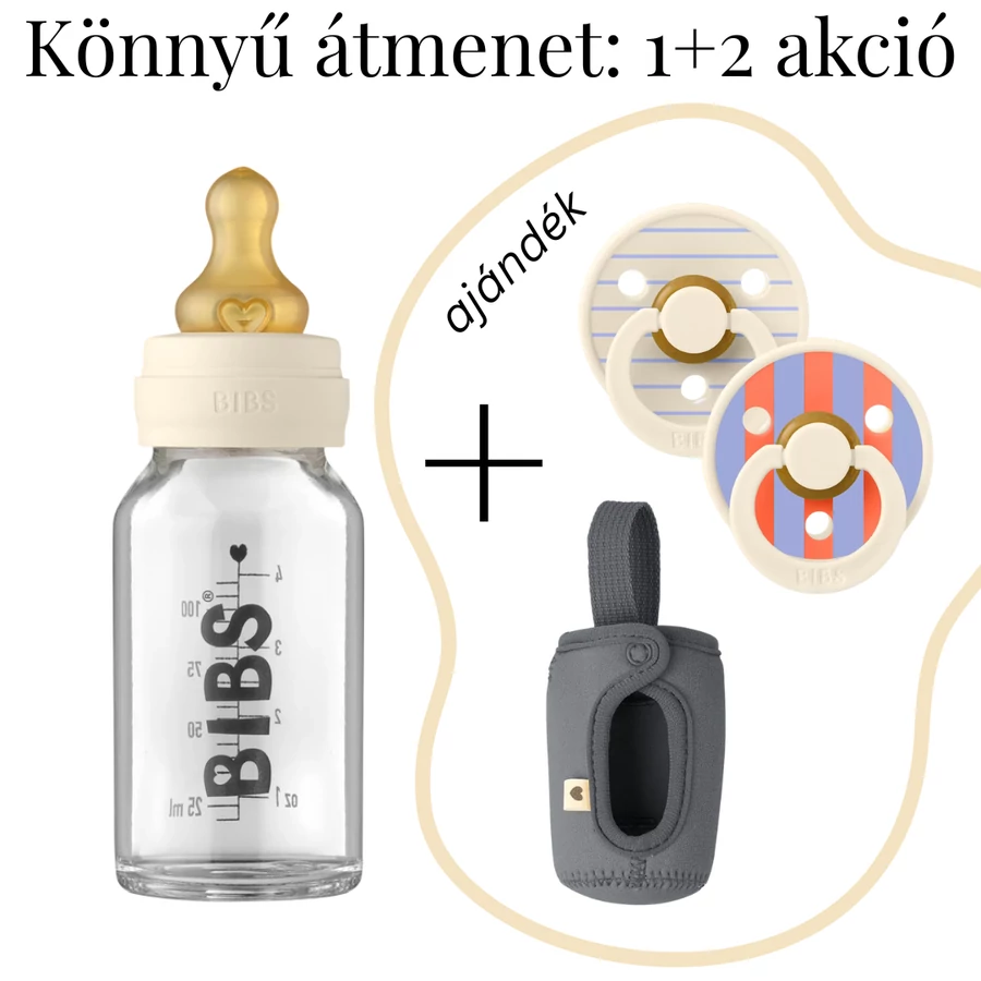 A cumisüveg most 15% kedvezménnyel (a mix feltüntetett átadási ára a kedvezményt tartalmazza), a cumipár és a cumisüveg tok ajándék a Könnyű átmenet 1+2 akcióban.