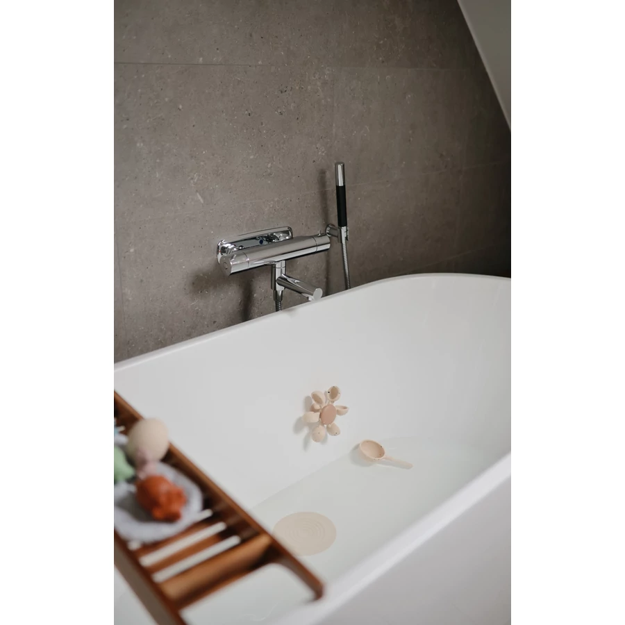 Ez a tapadókorongos pörgettyű játék, ami egyszerűen feltapad a kád szélére, vagy a szabadban akár egy vödör oldalára. 6 hónapos kortól ajánlott.