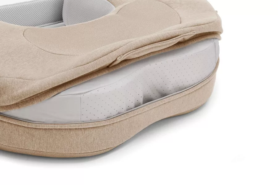 - A „komfortzóna”, az első tejoldalon található középső betét, differenciált sűrűséggel rendelkezik, amely lehetővé teszi az enyhe elhajlást a baba csípő területének hatására, ami elősegíti a fej és a test helyes tartását.