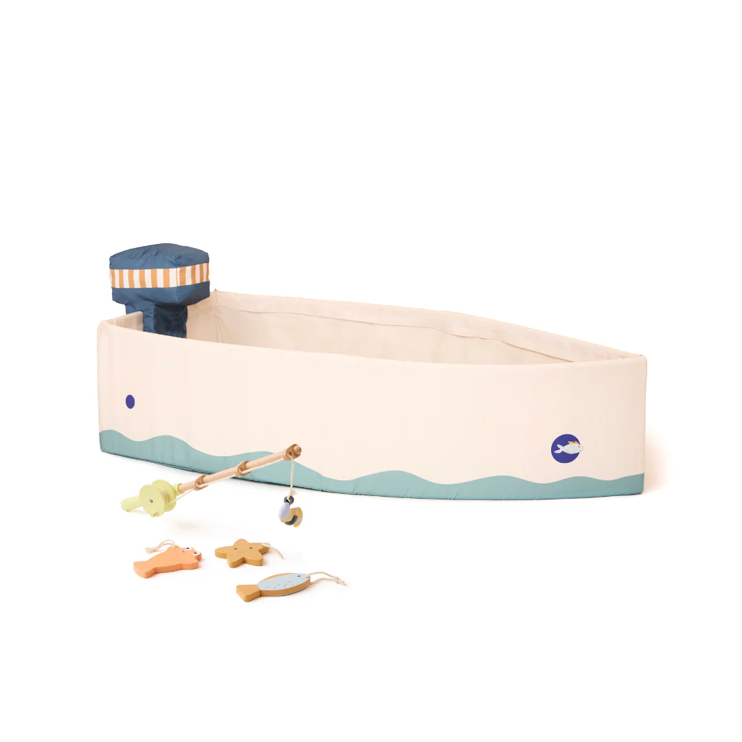 A Kid’s Concept horgászhajóval igazi hajós élményben lesz része a kis horgászoknak – indítsátok ti is a napot egy izgalmas hajóúttal! Érezzétek a hullámokat a csónak alatt és merüljetek alá vagy hajózzatok messzire! A játékcsónak puha, tengeri hangulatú kialakításával nemcsak a gyerekszoba dísze lesz, hanem a képzelet birodalmának központja is. Tudtok benne horgászni, utazni vagy felfedezni a távoli szigeteket is.