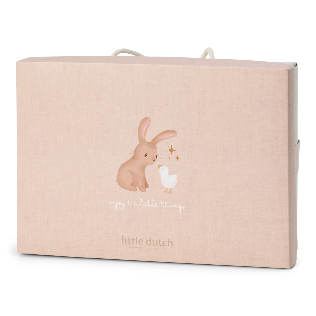 Ez a bájos Little Dutch ajándékdoboz a Newborn Naturals kollekciójából tökéletes választás az újszülötteknek. Gondosan összeállított szett, három puha kiegészítővel, melyek a babák első hónapjaiban nyújtanak biztonságot, kényelmet és játékos élményeket.