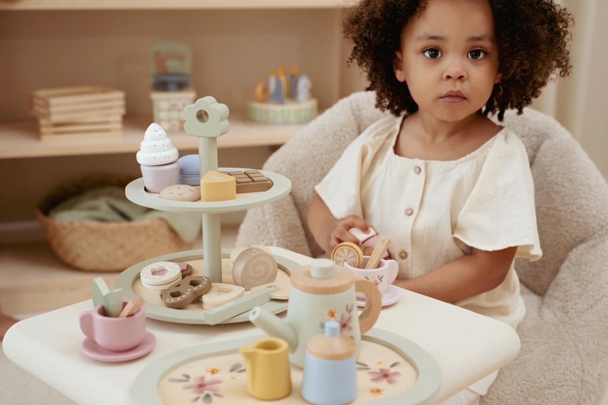 Szerepjáték ösztönzése: segíti a gyerekeket a mindennapi helyzetek utánzásában, mint például egy teadélután vagy cukrászda.