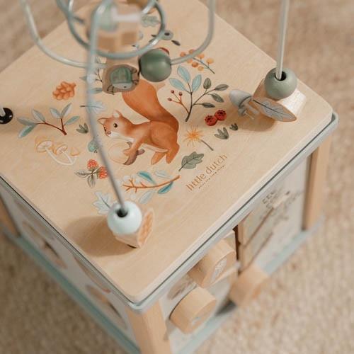A kocka mindegyik oldalán különböző finom motorikus készségeket fejlesztő játékok vannak. Formabedobók, puzzle, labirintus mind a szórakoztató oktatást szolgálják.