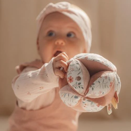 Ez a megfogható labda érdekes formájával nagyszerű kihívást jelent a kicsi számára. Jól megfogható a kis kezek számára, a különböző színű anyagok pedig eltérő textúrákat jelentenek, amiket érdekes megismerni.