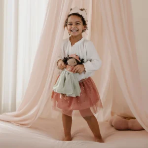 A gyerekek szeretnek mindent utánozni, amit szüleik csinálnak, és ez a játékbaba remek inspiráció a gondoskodó szerepjátékra. Lily Rosy Meadows stílusú hajpántba, ruhába és nadrágba öltözött, puha rózsaszín kardigánnal. Az öltöztetés nagyszerűen fejleszti a finommotorikát, a cumi és a cumisüveg pedig a szociális, gondoskodó készségeket inspirálja.