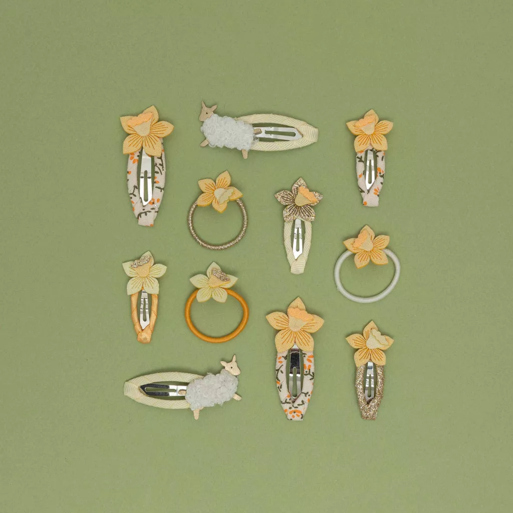 Csempésszetek egy kis virágos frissességet a frizurába tavasszal ezzel a bájos nárciszos mini hajgumi szettel, amely könnyen variálható és kombinálható őket kedved szerint! Adj játékos, szezonális hangulatot minden megjelenéshez – garantáltan mosolyt csal az arcokra.
